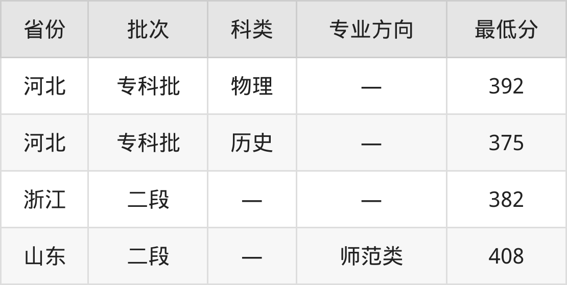 荆州理工职业学院美术教育专业在全国各省最低录取分数线为375分(河北历史类),除此之外,在其余地区的最低分为山东408分、浙江382分,以上数据均为2024年数据,供2025年高考生参考。