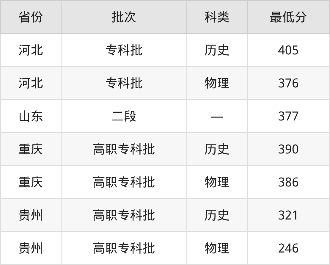 三峡旅游职业技术学院旅游管理专业在全国各省最低录取分数线为246分(贵州物理类),除此之外,在其余地区的最低分为河北物理类376分、山东377分、重庆物理类386分,以上数据均为2025年数据,供2026年高考生参考。