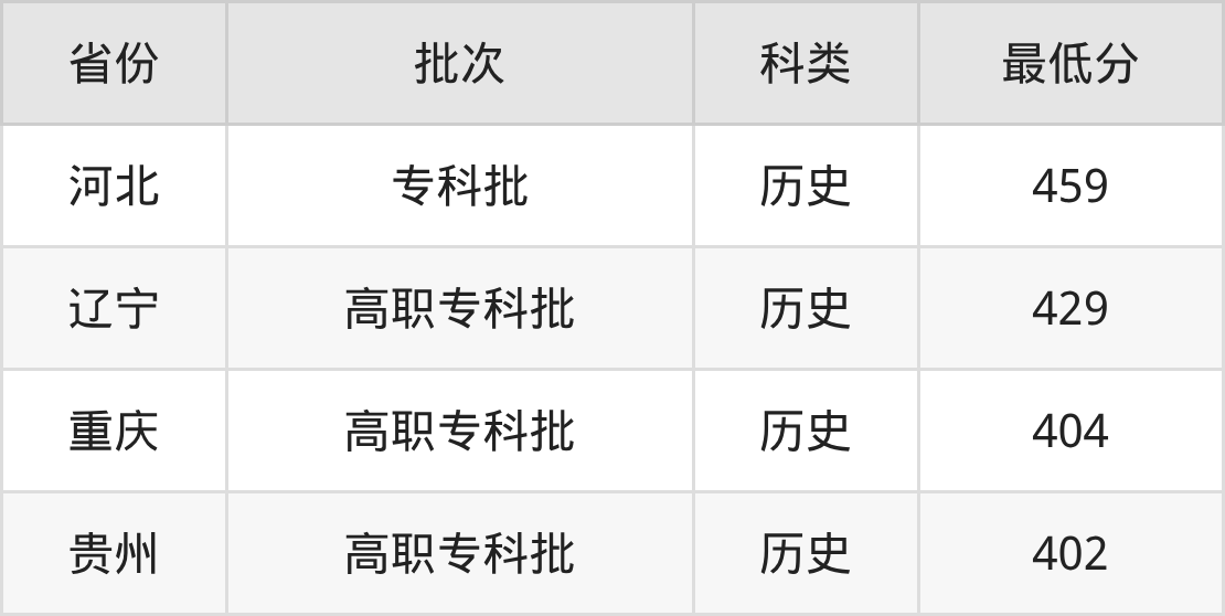 临汾职业技术学院护理专业录取分数线从402分到459分不等,最低分数线如下: