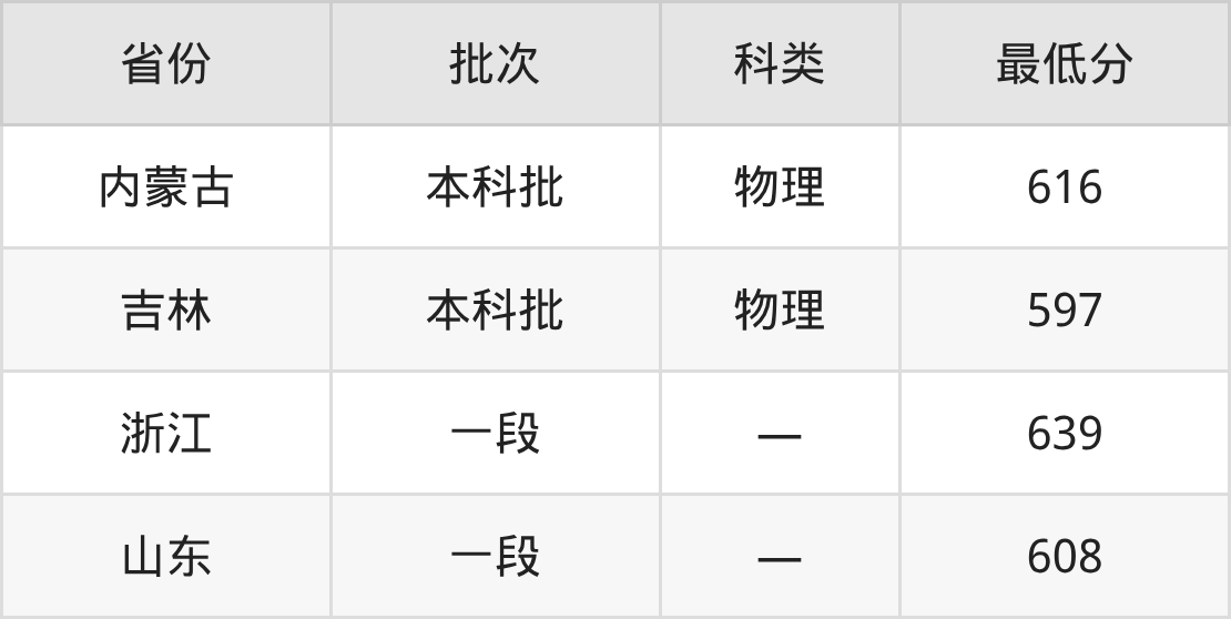 深圳大学材料科学与工程专业在全国各省最低录取分数线为597分(吉林物理类),除此之外,在其余地区的最低分为浙江639分、山东608分、内蒙古物理类616分,以上数据均为2025年数据,供2026年高考生参考。