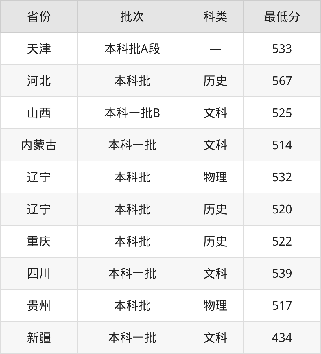 辽宁工程技术大学会计学专业在全国各省最低录取分数线为434分(新疆文科),除此之外,在其余地区的最低分为天津533分、河北历史类567分、山西文科525分、辽宁历史类520分等,以上数据均为2024年数据,供2025年高考生参考。