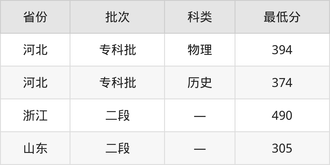 青岛农业大学海都学院电气自动化技术专业在全国各省最低录取分数线为305分(山东),除此之外,在其余地区的最低分为河北历史类374分、浙江490分,以上数据均为2024年数据,供2025年高考生参考。