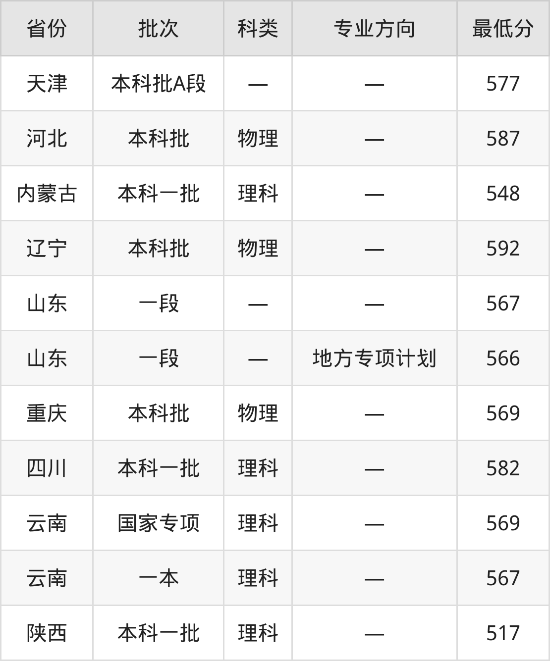 青岛大学能源与动力工程专业录取分数线从517分到592分不等,最低分数线如下: