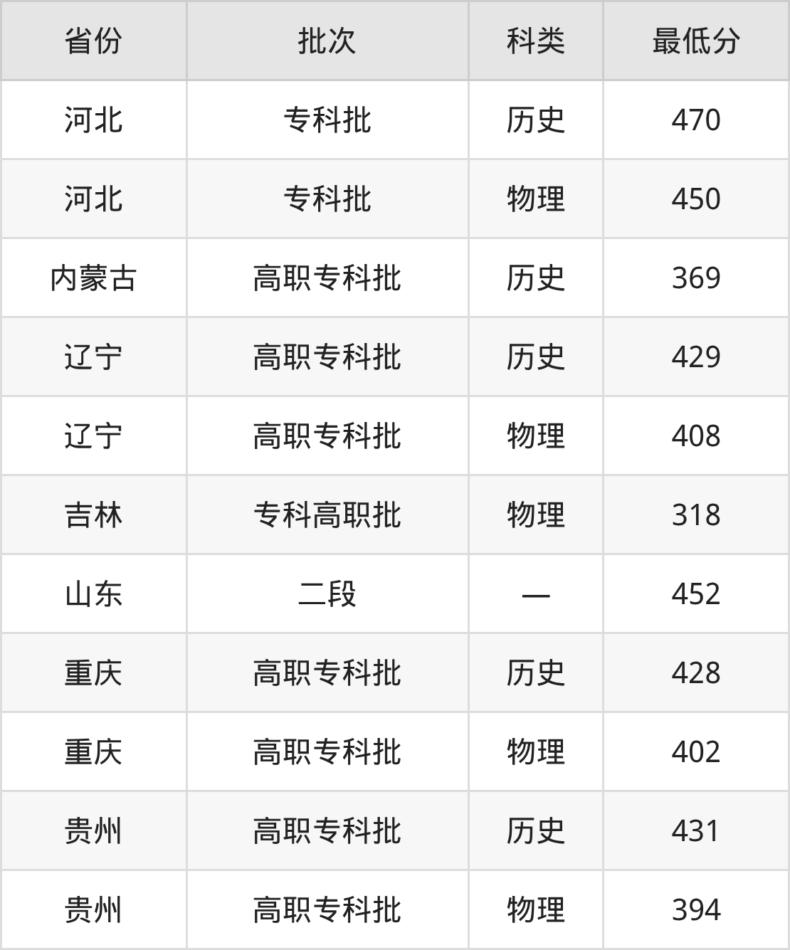 湖南工程职业技术学院大数据与会计专业在全国各省最低录取分数线为318分(吉林物理类),除此之外,在其余地区的最低分为贵州物理类394分、河北物理类450分、内蒙古历史类369分、辽宁物理类408分等,以上数据均为2025年数据,供2026年高考生参考。