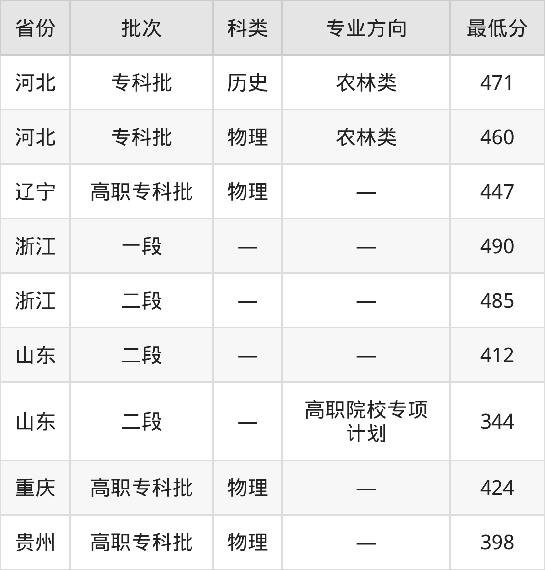 山东畜牧兽医职业学院宠物医疗技术专业在全国各省录取分数线: