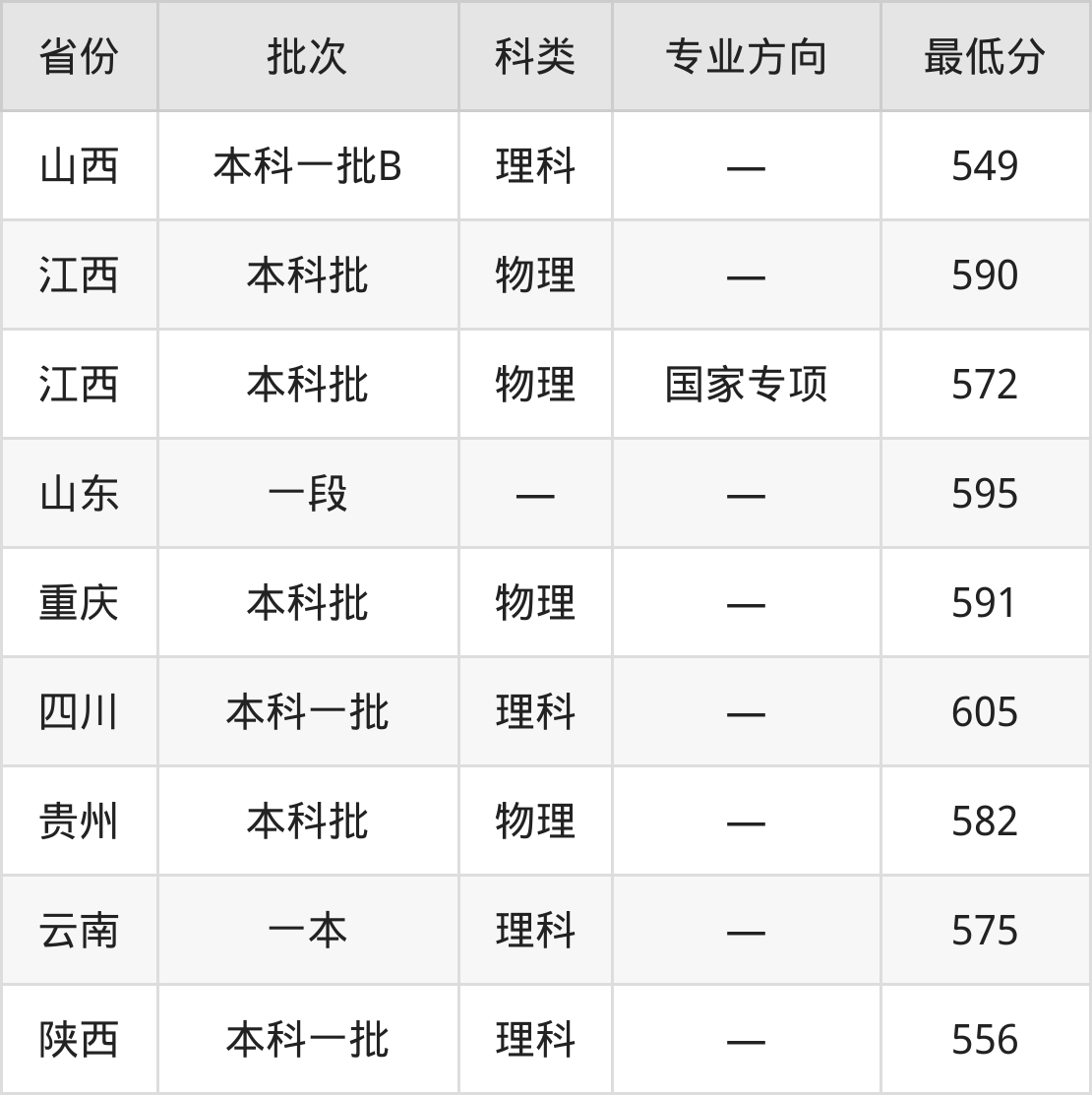 南京工业大学计算机科学与技术专业在全国各省最低录取分数线为549分(山西理科),除此之外,在其余地区的最低分为贵州物理类582分、云南理科575分、陕西理科556分、江西物理类572分等,以上数据均为2024年数据,供2025年高考生参考。