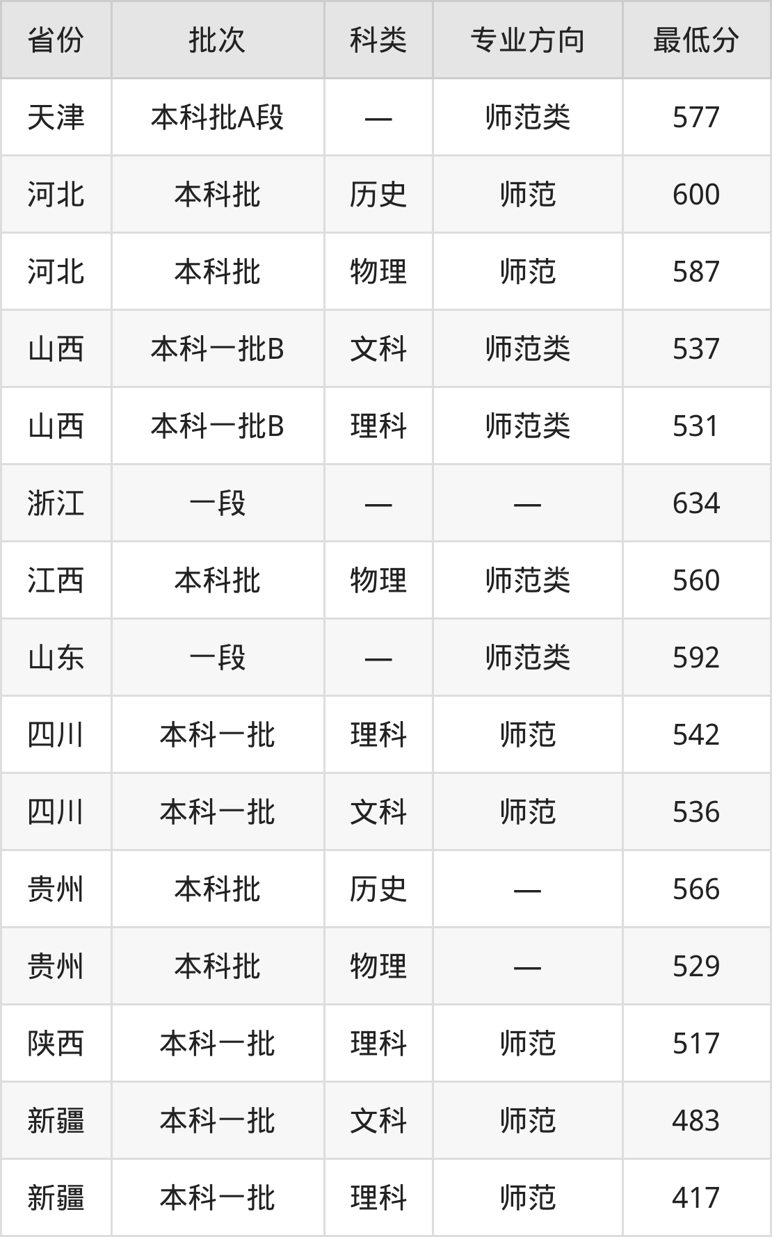 天津师范大学地理科学专业录取分数线从417分到634分不等,最低分数线如下:
