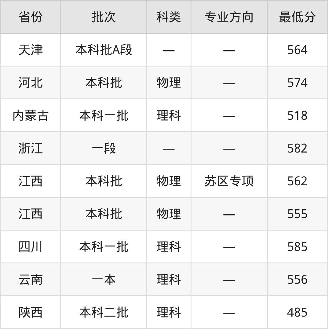 南昌航空大学光电信息科学与工程专业在全国各省最低录取分数线为485分(陕西理科),除此之外,在其余地区的最低分为浙江582分、江西物理类555分、四川理科585分、云南理科556分等,以上数据均为2024年数据,供2025年高考生参考。