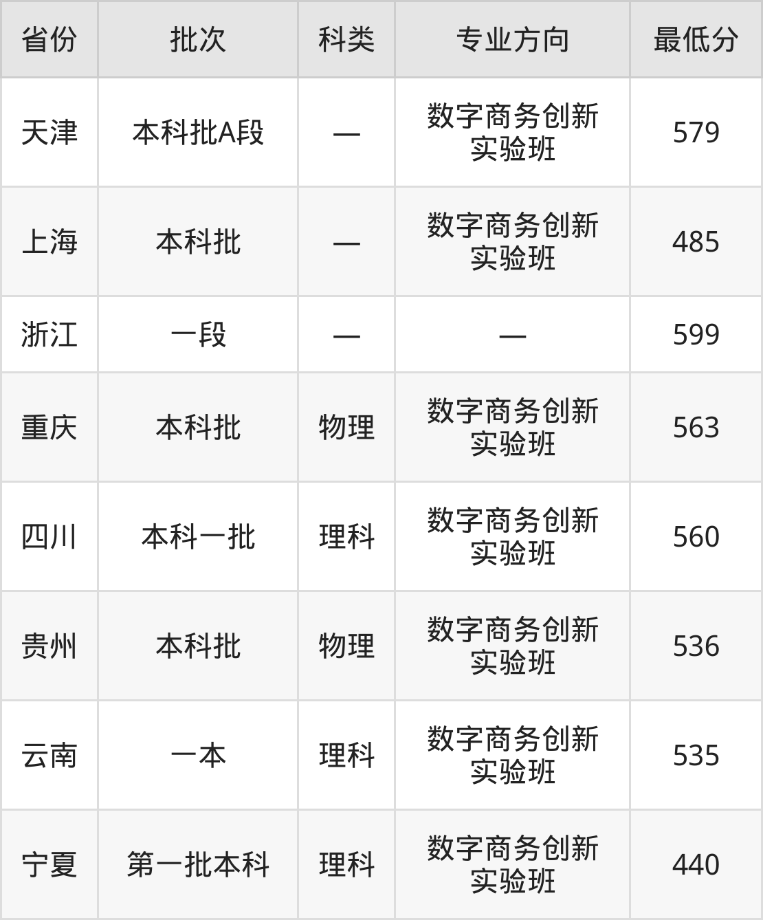 杭州师范大学电子商务专业在全国各省录取分数线: