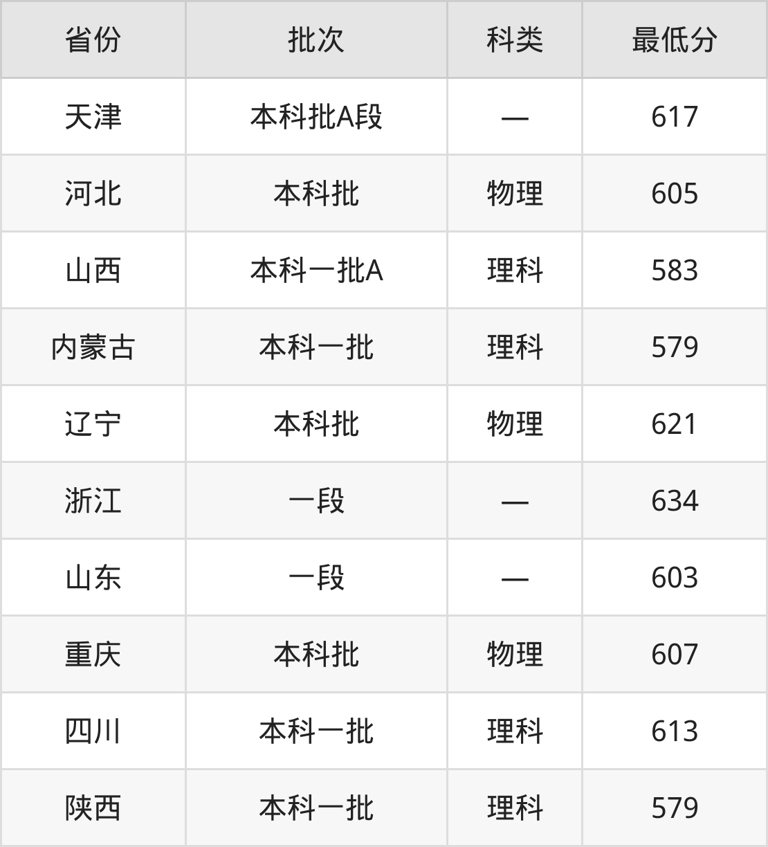 山西:理科最低583分