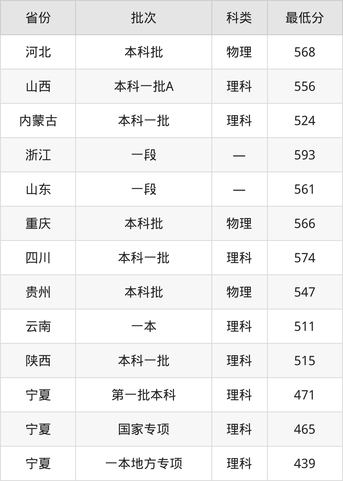 宁夏大学化学工程与工艺专业录取分数线从439分到593分不等,在部分地区的最低分数线如下: