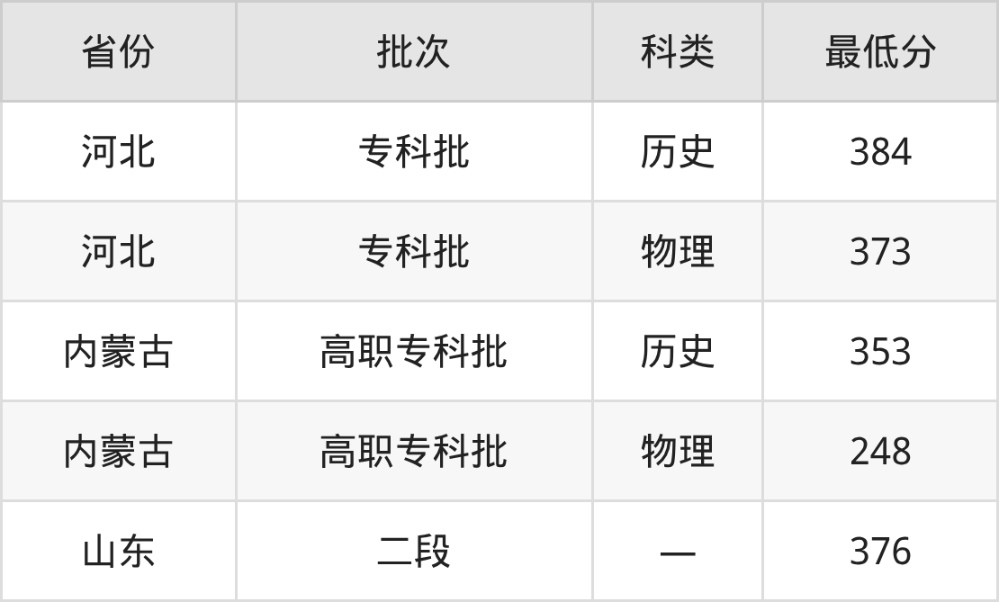 山东:最低376分