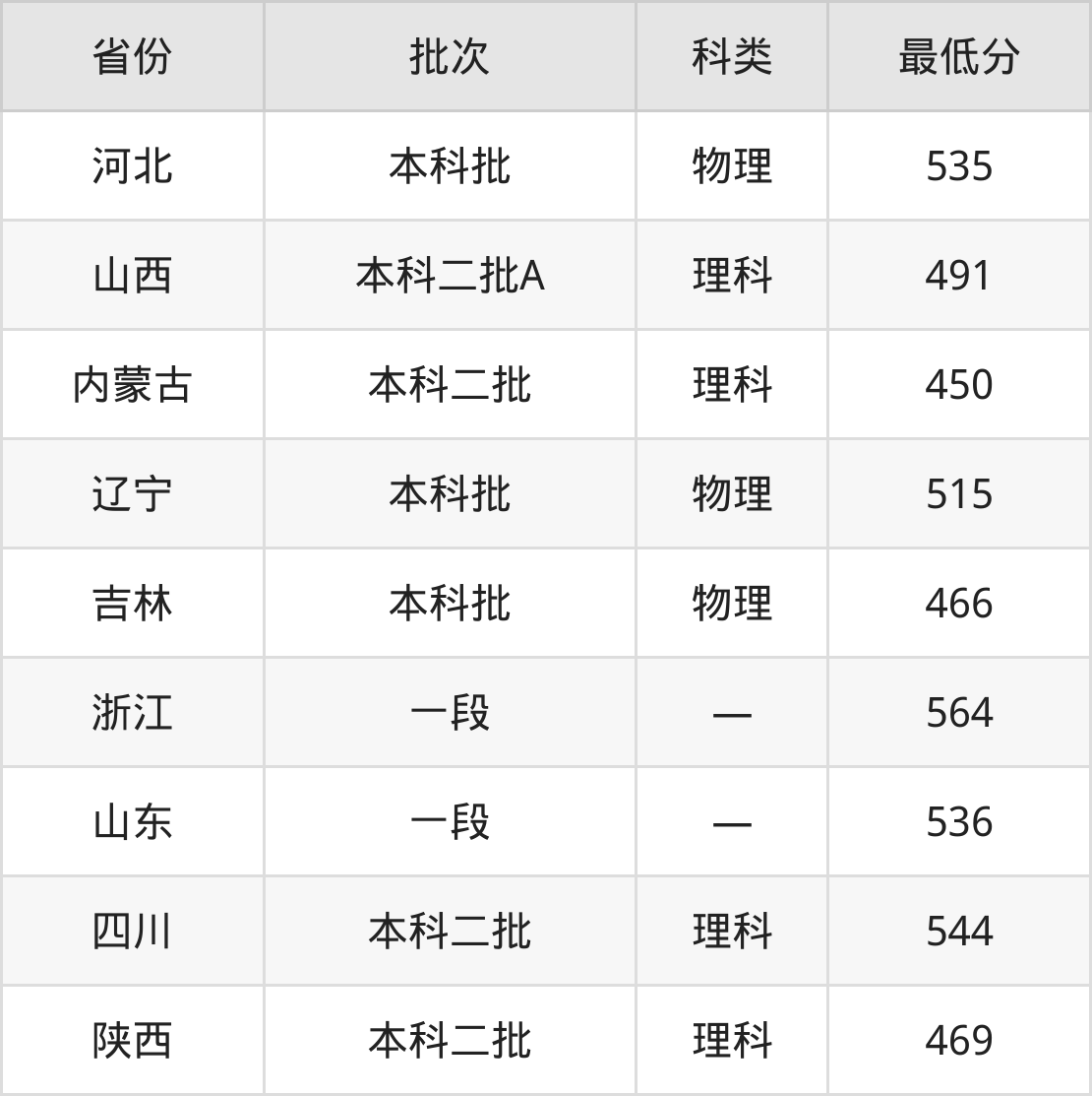 河北工程大学地理信息科学专业在全国各省最低录取分数线为450分(内蒙古理科),除此之外,在其余地区的最低分为山西理科491分、辽宁物理类515分、吉林物理类466分、山东536分等,以上数据均为2024年数据,供2025年高考生参考。