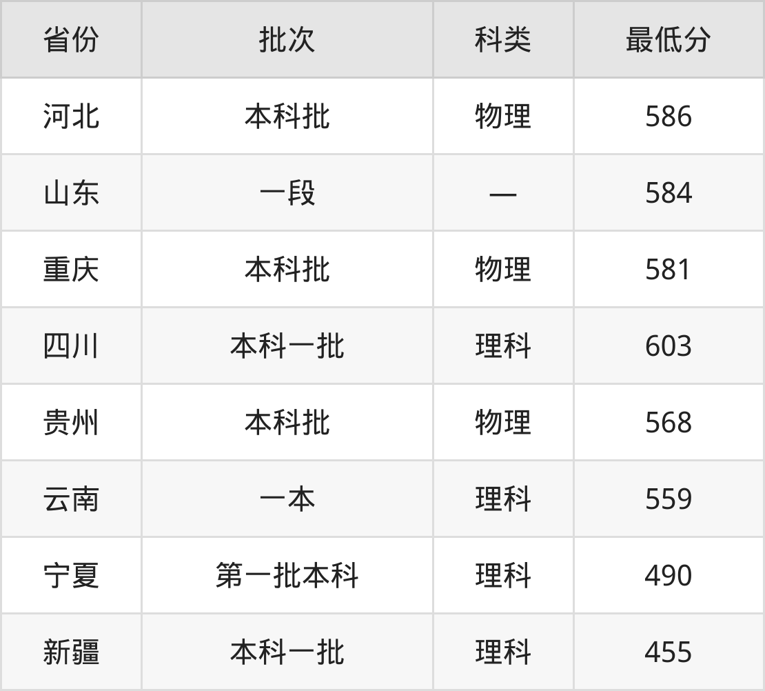 新疆大学网络空间安全专业录取分数线从455分到603分不等,最低分数线如下: