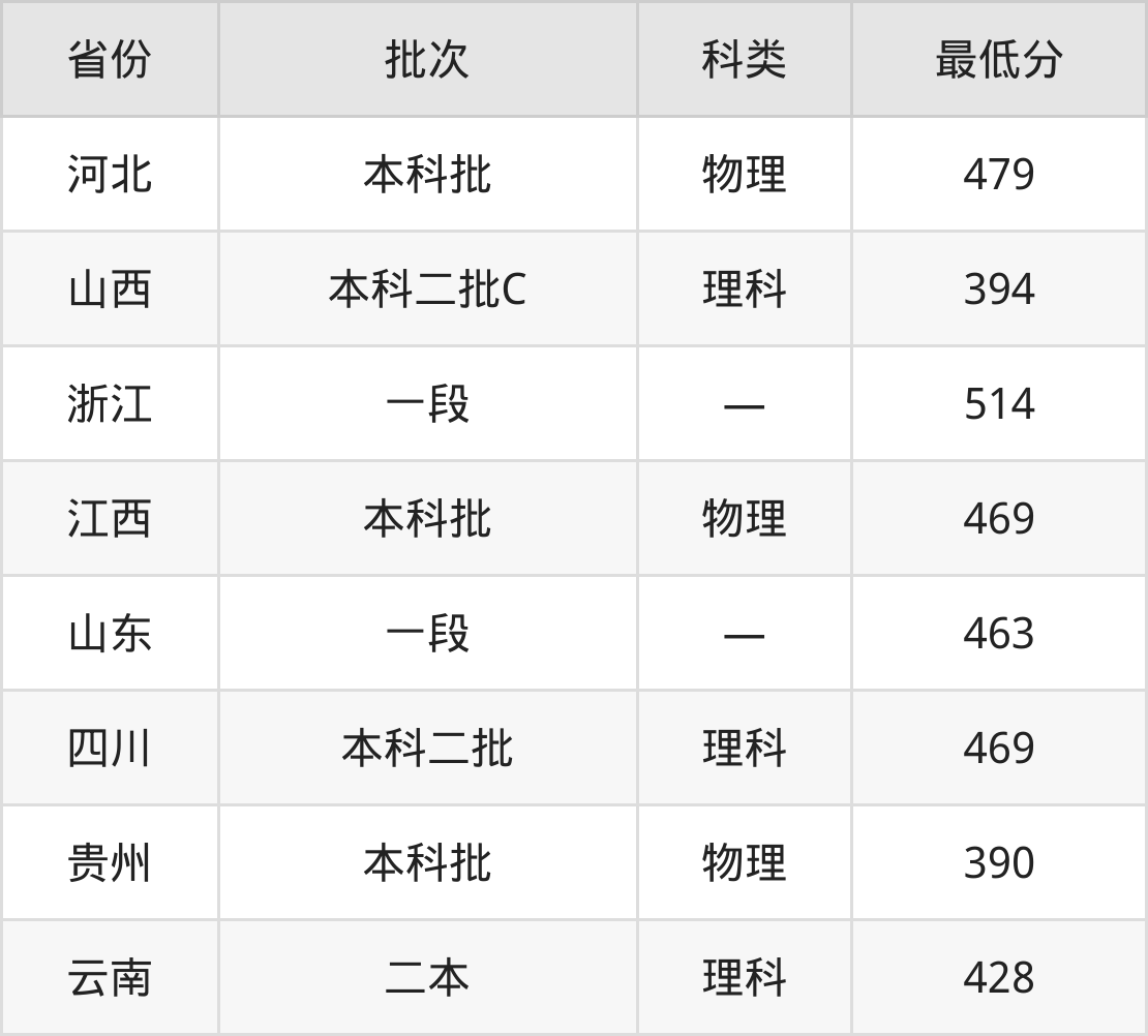 浙江农林大学暨阳学院计算机科学与技术专业在全国各省最低录取分数线为390分(贵州物理类),除此之外,在其余地区的最低分为江西物理类469分、山东463分、四川理科469分、云南理科428分等,以上数据均为2024年数据,供2025年高考生参考。