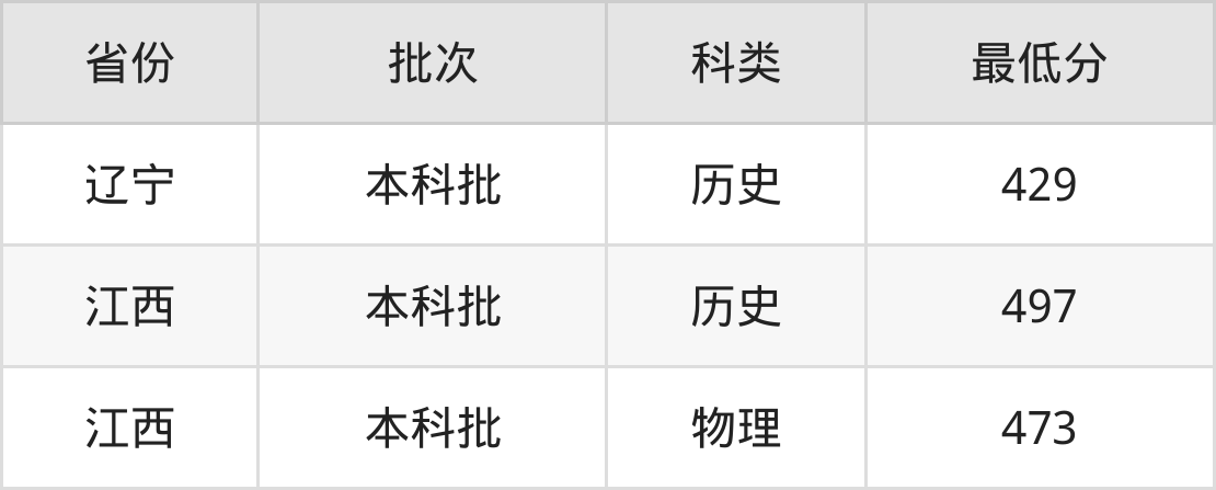 南昌大学科学技术学院日语专业录取分数线从429分到497分不等,最低分数线如下: