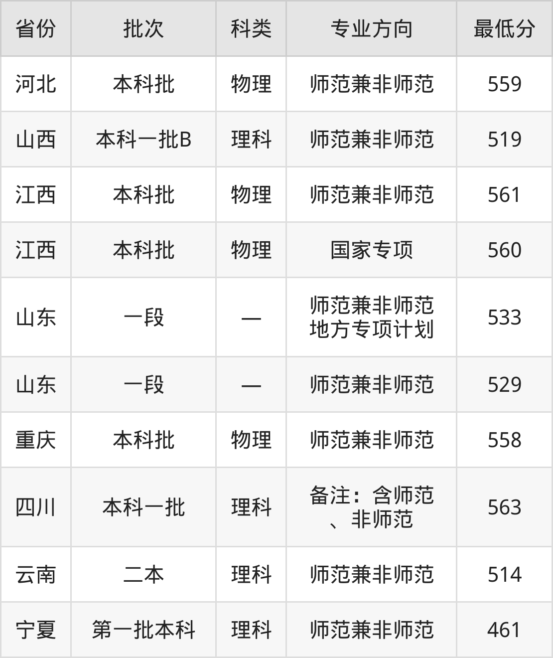 济南大学物理学专业录取分数线从461分到563分不等,最低分数线如下:
