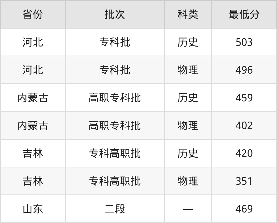 南阳医学高等专科学校口腔医学专业在全国各省最低录取分数线为351分(吉林物理类),除此之外,在其余地区的最低分为内蒙古物理类402分、山东469分、河北物理类496分,以上数据均为2025年数据,供2026年高考生参考。