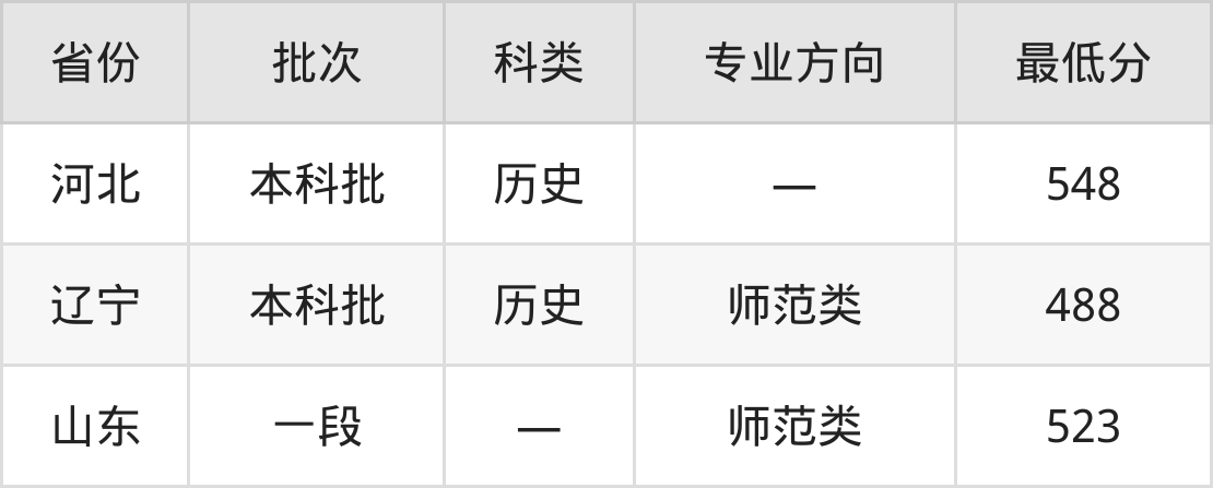 鲁东大学学前教育专业录取分数线从488分到548分不等,最低分数线如下: