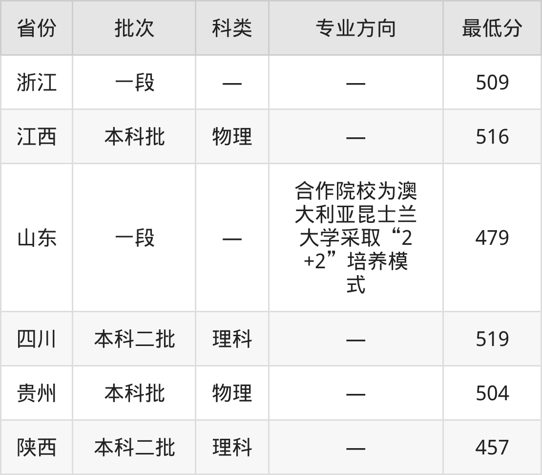 | 物理类 | 161组 | 中澳学分互认 联合培养项目 合作院校为澳 大利亚昆士兰 大学采取“2 +2”培养模 式 | 20 |