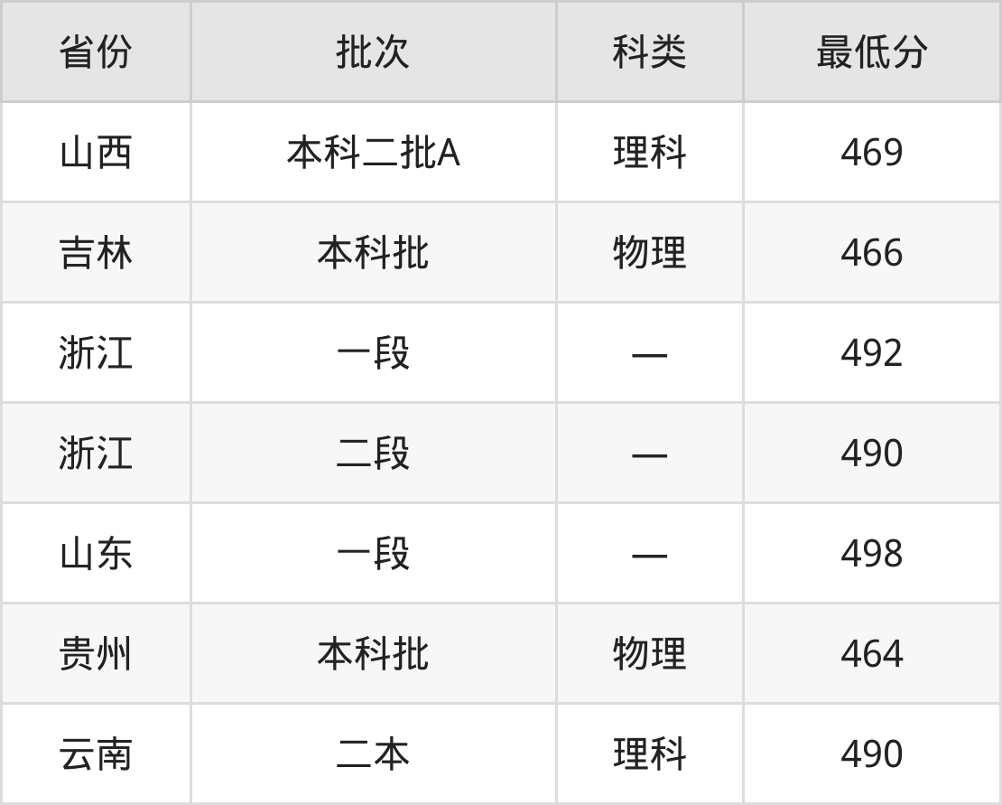 福建农林大学木材科学与工程专业在全国各省最低录取分数线为464分(贵州物理类),除此之外,在其余地区的最低分为山西理科469分、吉林物理类466分、浙江490分、山东498分等,以上数据均为2024年数据,供2025年高考生参考。