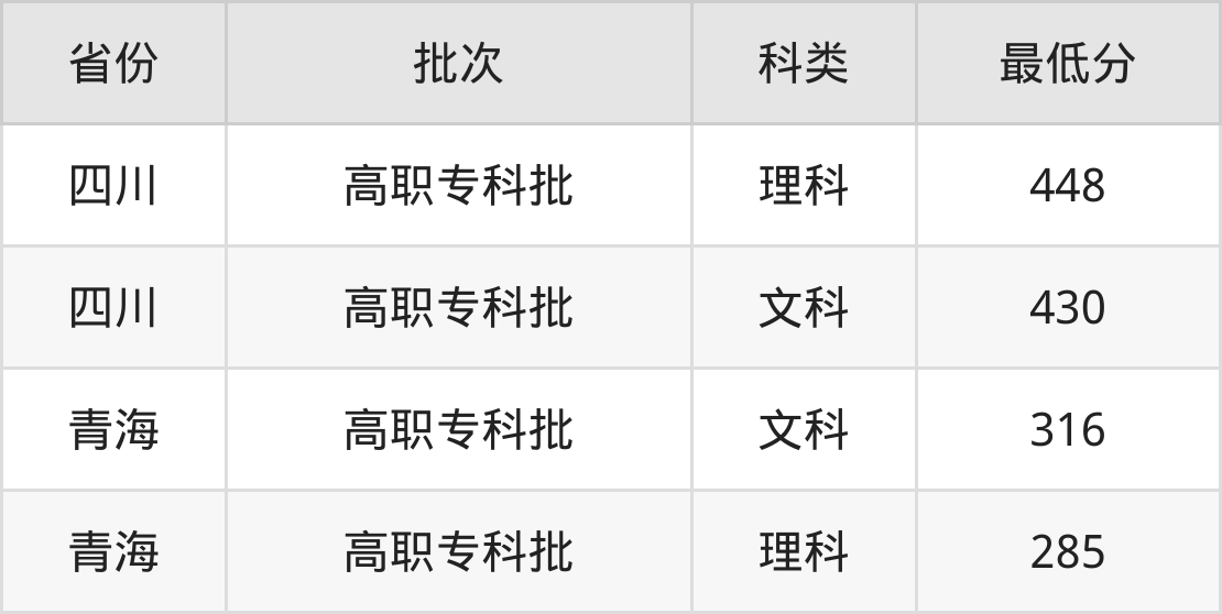 四川航天职业技术学院数字媒体技术专业录取分数线从285分到448分不等,最低分数线如下:
