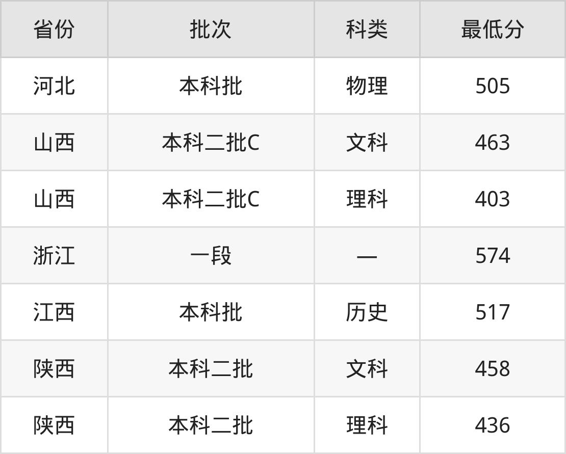 浙江万里学院知识产权专业在全国各省最低录取分数线为403分(山西理科),除此之外,在其余地区的最低分为浙江574分、江西历史类517分、陕西理科436分、河北物理类505分等,以上数据均为2024年数据,供2025年高考生参考。