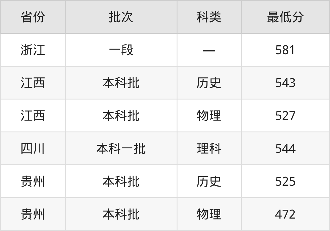 浙江外国语学院跨境电子商务专业录取分数线从472分到581分不等,最低分数线如下: