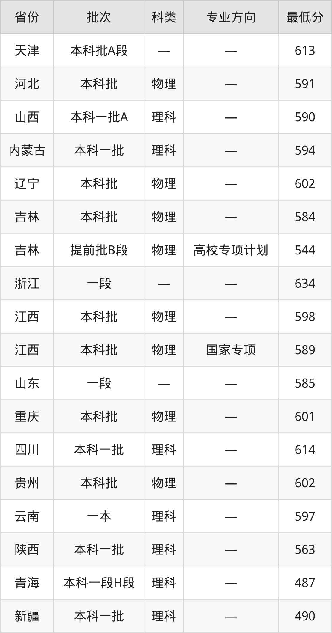 西北农林科技大学林学类专业录取分数线从487分到634分不等,在部分地区的最低分数线如下: