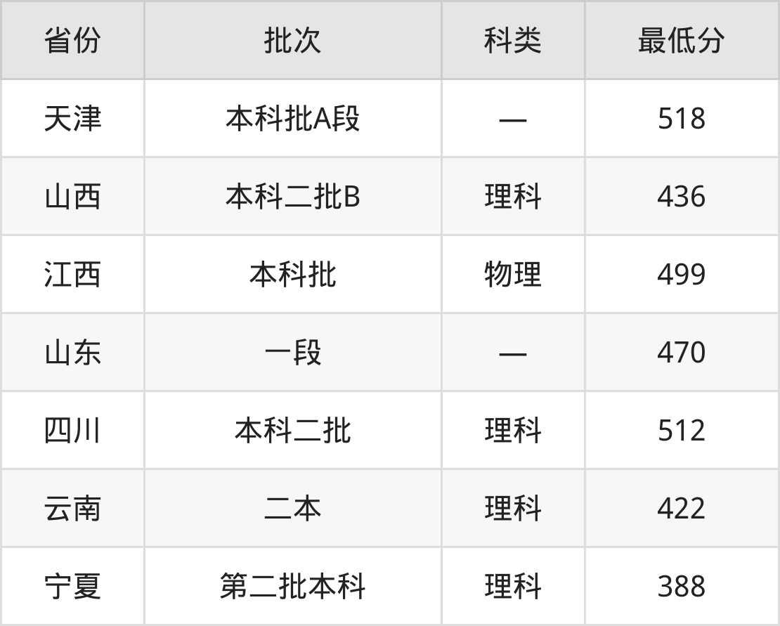 郑州工程技术学院智能建造专业在全国各省最低录取分数线为388分(宁夏理科),除此之外,在其余地区的最低分为四川理科512分、云南理科422分、天津518分、山西理科436分等,以上数据均为2024年数据,供2025年高考生参考。
