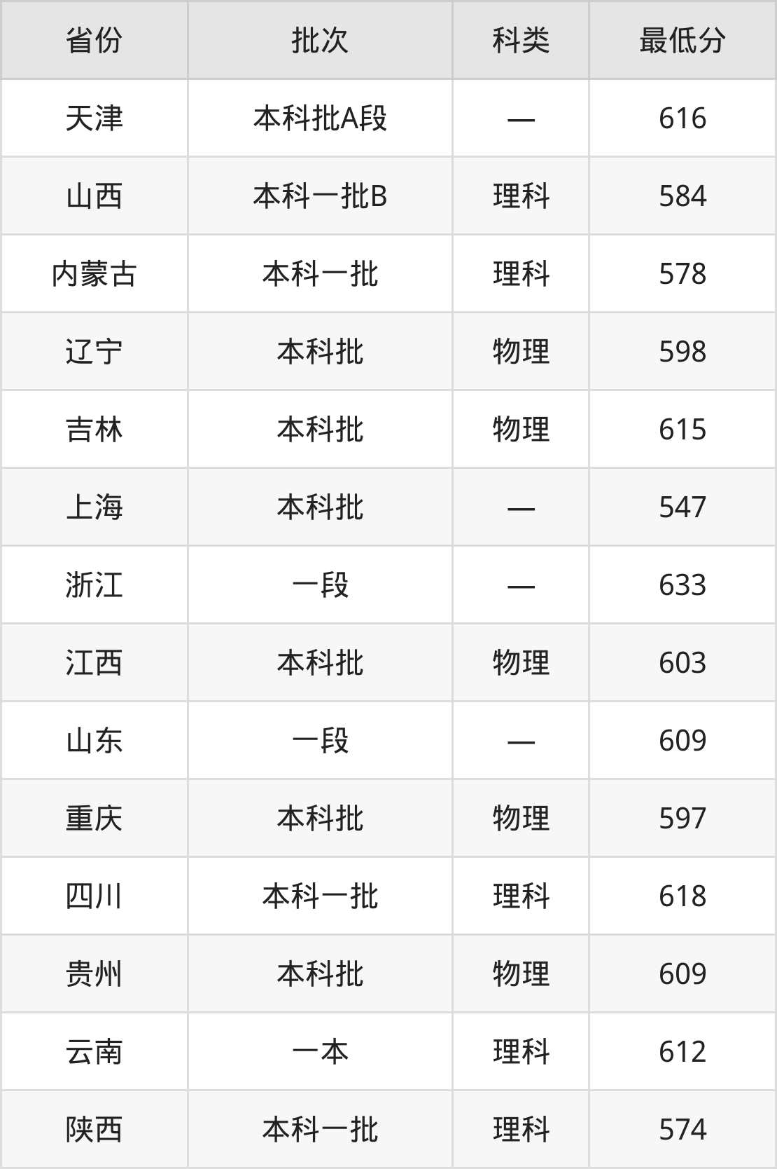 重庆医科大学精神医学专业录取分数线从547分到633分不等,在部分地区的最低分数线如下: