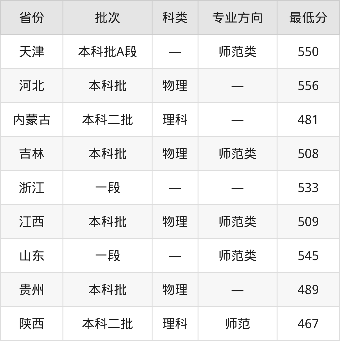 吉林师范大学计算机科学与技术专业录取分数线从467分到556分不等,最低分数线如下: