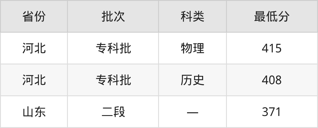 六安职业技术学院电子商务专业录取分数线从371分到415分不等,最低分数线如下: