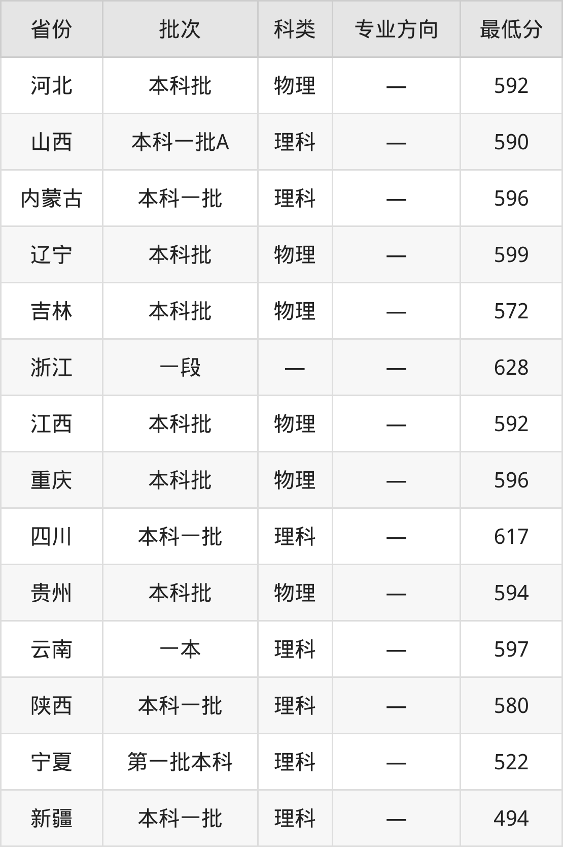 郑州大学材料类专业录取分数线从494分到628分不等,在部分地区的最低分数线如下: