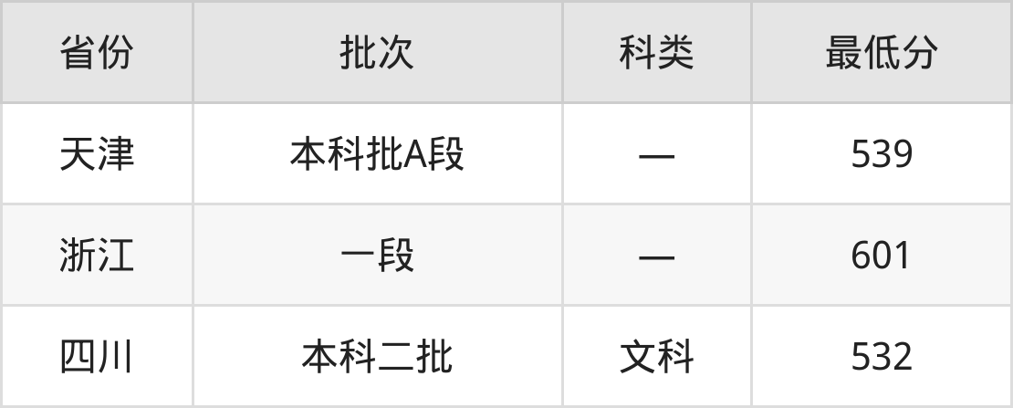 甘肃政法大学侦查学专业在全国各省最低录取分数线为532分(四川文科),除此之外,在其余地区的最低分为天津539分、浙江601分,以上数据均为2024年数据,供2025年高考生参考。
