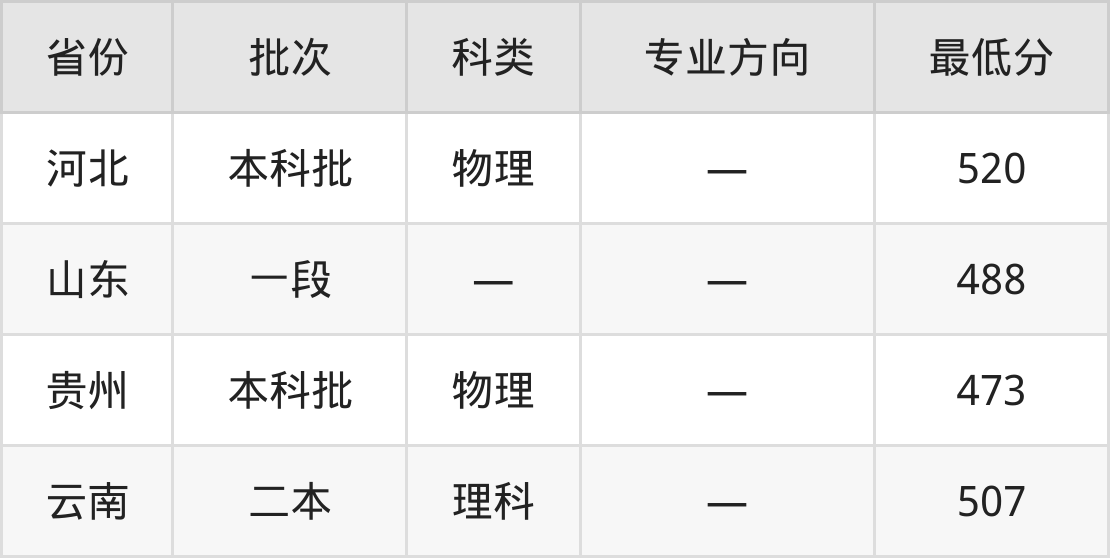 河北科技大学环境科学与工程类专业在全国各省最低录取分数线为473分(贵州物理类),除此之外,在其余地区的最低分为山东488分、云南理科507分、河北物理类520分,以上数据均为2024年数据,供2025年高考生参考。