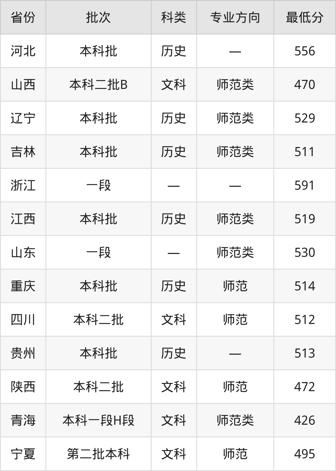 哈尔滨学院汉语言文学专业录取分数线从426分到591分不等,在部分地区的最低分数线如下: