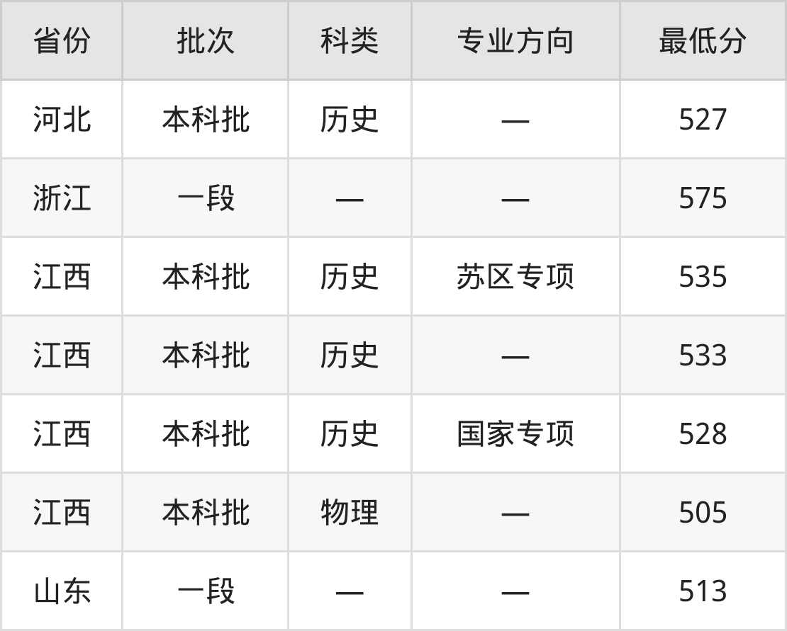 井冈山大学西班牙语专业在全国各省录取分数线: