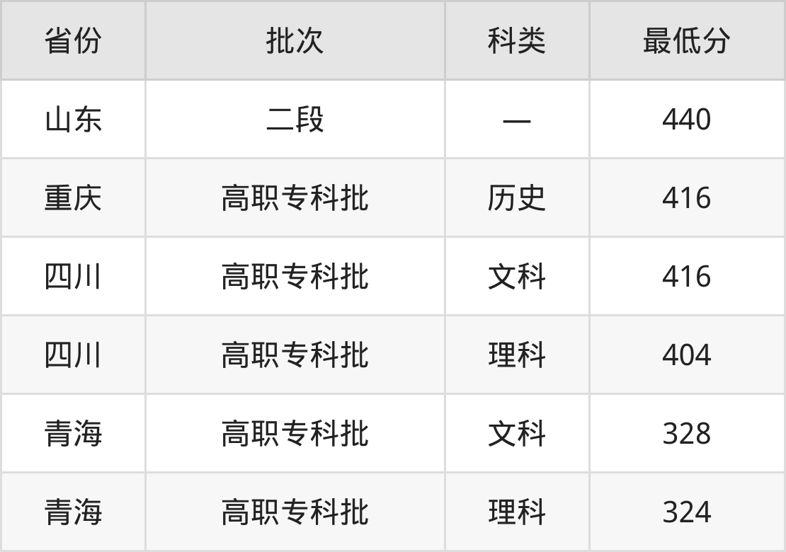 海南经贸职业技术学院商务英语专业在全国各省最低录取分数线为324分(青海理科),除此之外,在其余地区的最低分为山东440分、重庆历史类416分、四川理科404分,以上数据均为2024年数据,供2025年高考生参考。