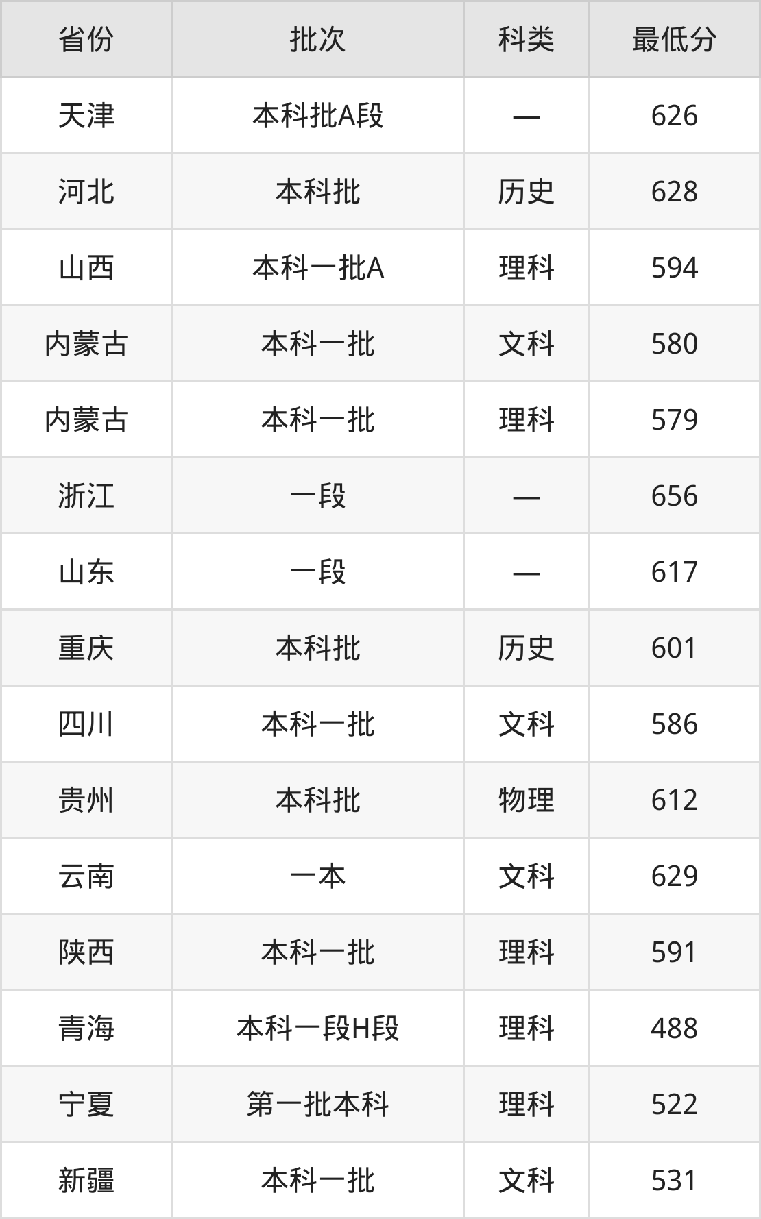 暨南大学法学专业录取分数线从488分到656分不等,在部分地区的最低分数线如下: