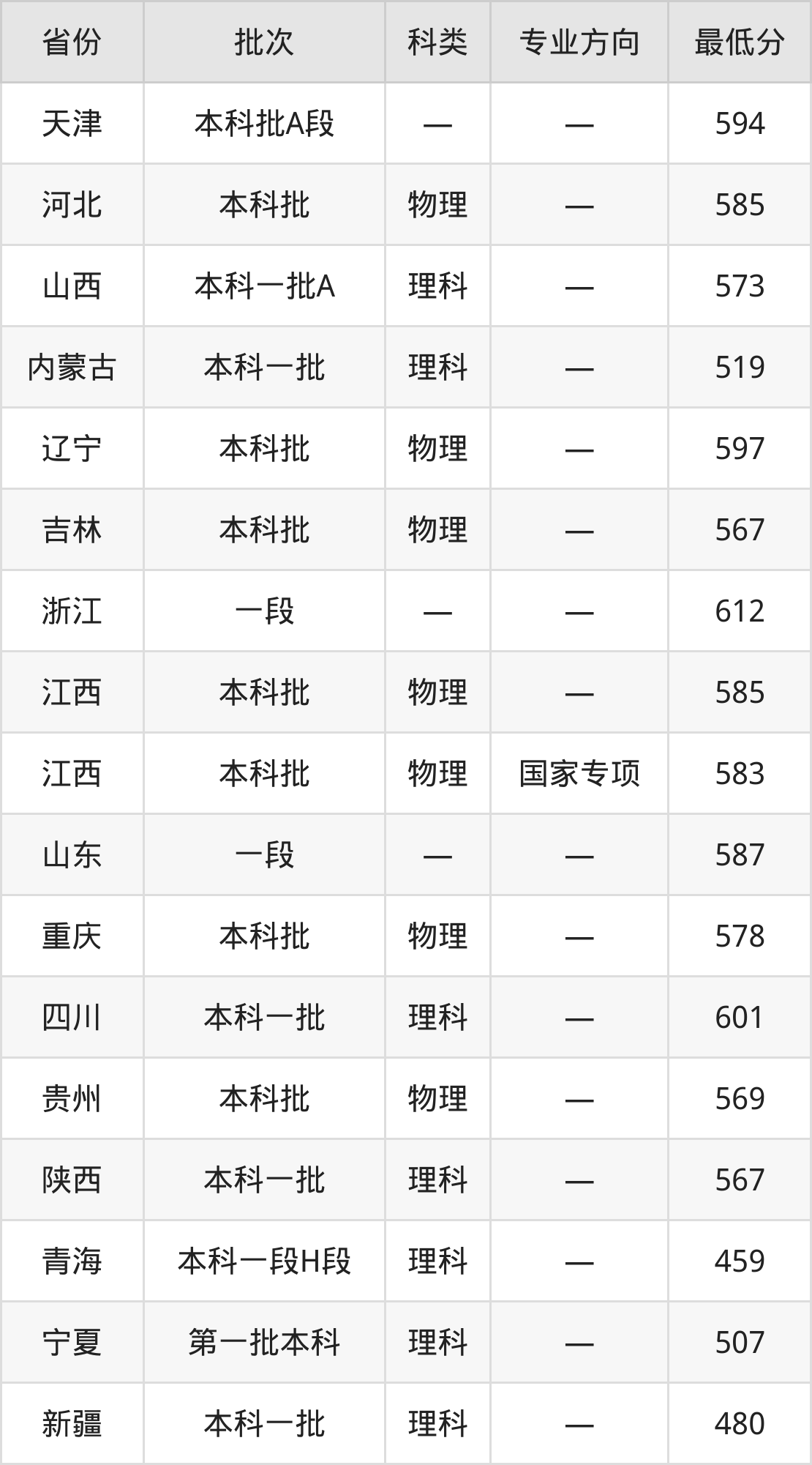 江苏大学能源与动力工程专业在全国各省最低录取分数线为459分(青海理科),除此之外,在其余地区的最低分为天津594分、河北物理类585分、山西理科573分、四川理科601分等,以上数据均为2024年数据,供2025年高考生参考。