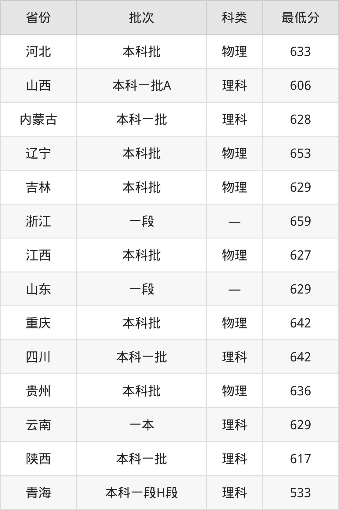 内蒙古:理科最低628分