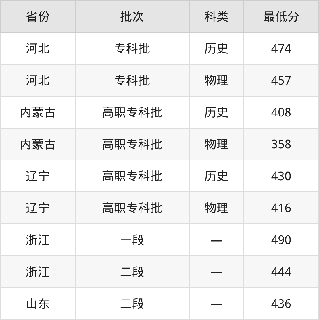 天津现代职业技术学院电子竞技运动与管理专业在全国各省最低录取分数线为358分(内蒙古物理类),除此之外,在其余地区的最低分为河北物理类457分、辽宁物理类416分、浙江444分、山东436分,以上数据均为2025年数据,供2026年高考生参考。