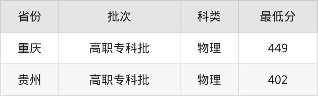 湖北三峡职业技术学院动物医学专业在全国各省最低录取分数线为402分(贵州物理类),除此之外,在其余地区的最低分为重庆物理类449分,以上数据均为2025年数据,供2026年高考生参考。