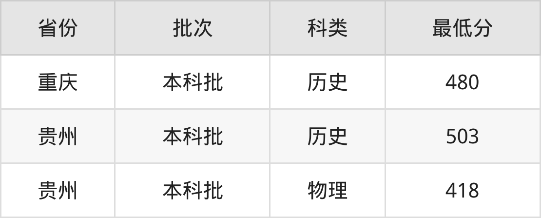 湖南应用技术学院英语专业在全国各省最低录取分数线为418分(贵州物理类),除此之外,在其余地区的最低分为重庆历史类480分,以上数据均为2025年数据,供2026年高考生参考。