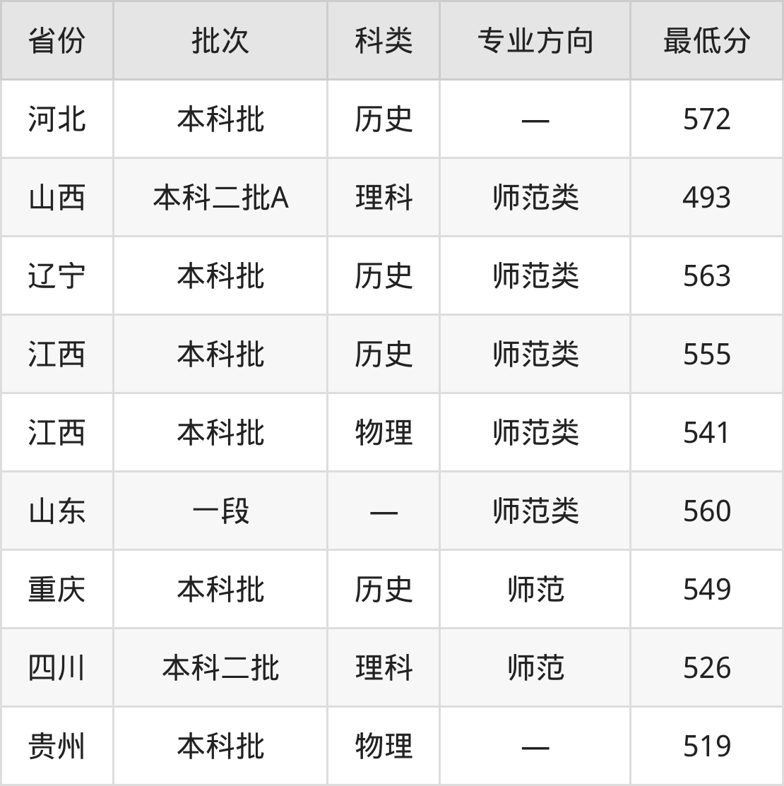 湖北师范大学地理科学专业录取分数线从493分到572分不等,最低分数线如下: