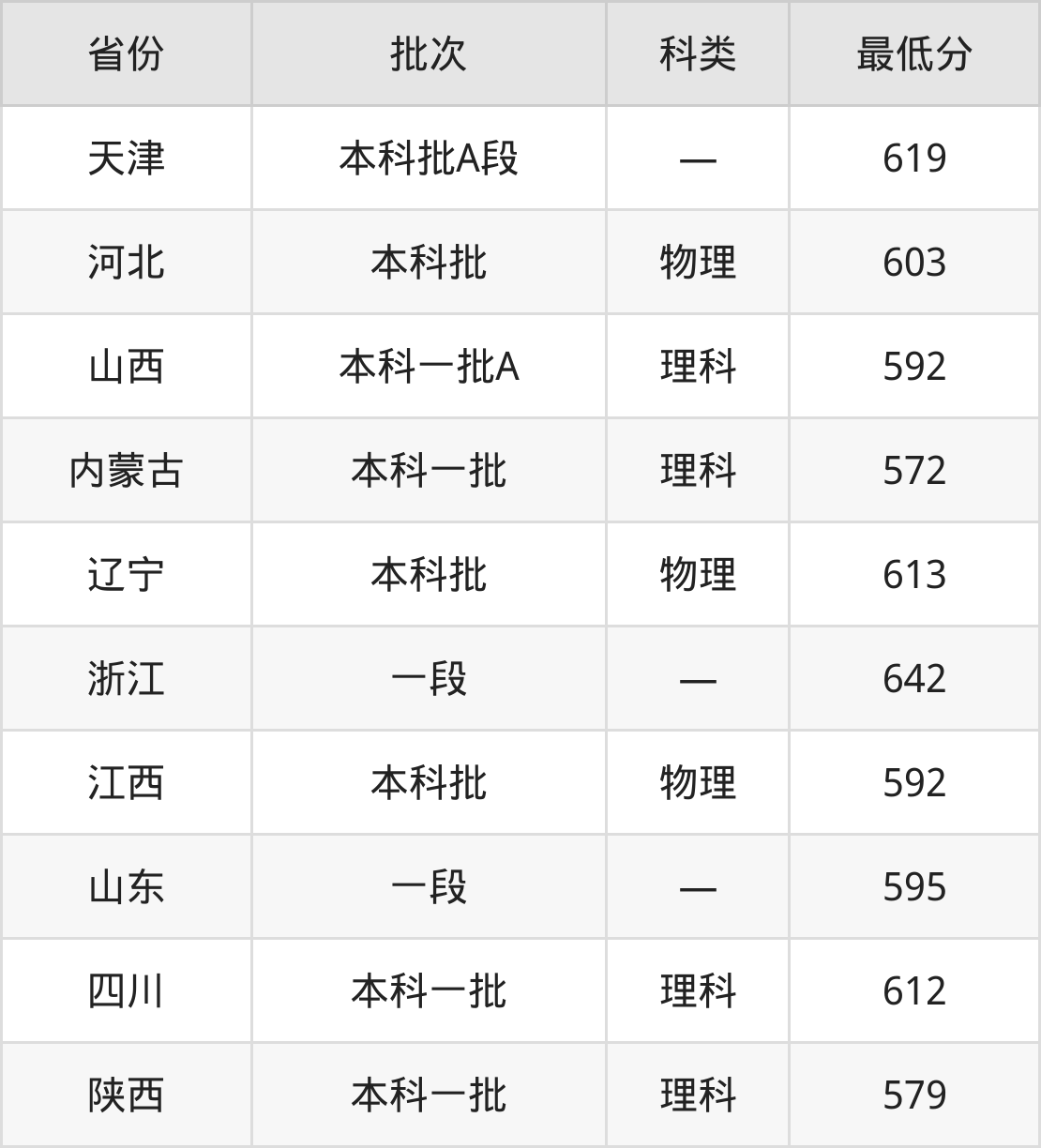 中国地质大学(北京)地理信息科学专业在全国各省最低录取分数线为572分(内蒙古理科),除此之外,在其余地区的最低分为天津619分、浙江642分、四川理科612分、辽宁物理类613分等,以上数据均为2024年数据,供2025年高考生参考。