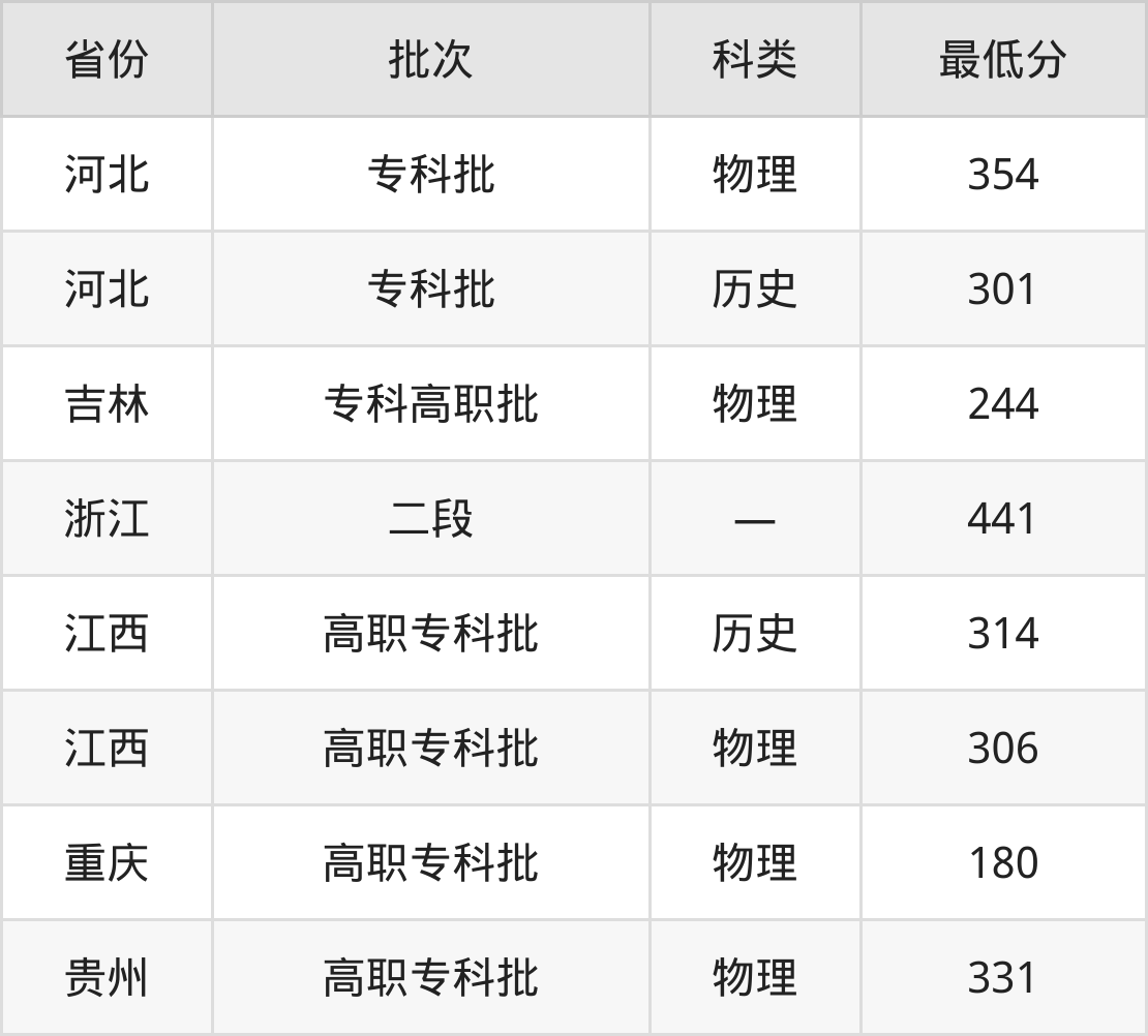 南昌理工学院建筑装饰工程技术专业在全国各省最低录取分数线为180分(重庆物理类),除此之外,在其余地区的最低分为吉林物理类244分、浙江441分、江西物理类306分、贵州物理类331分等,以上数据均为2024年数据,供2025年高考生参考。