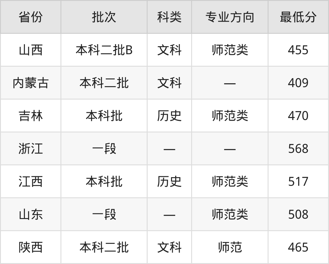 山西:文科最低455分
