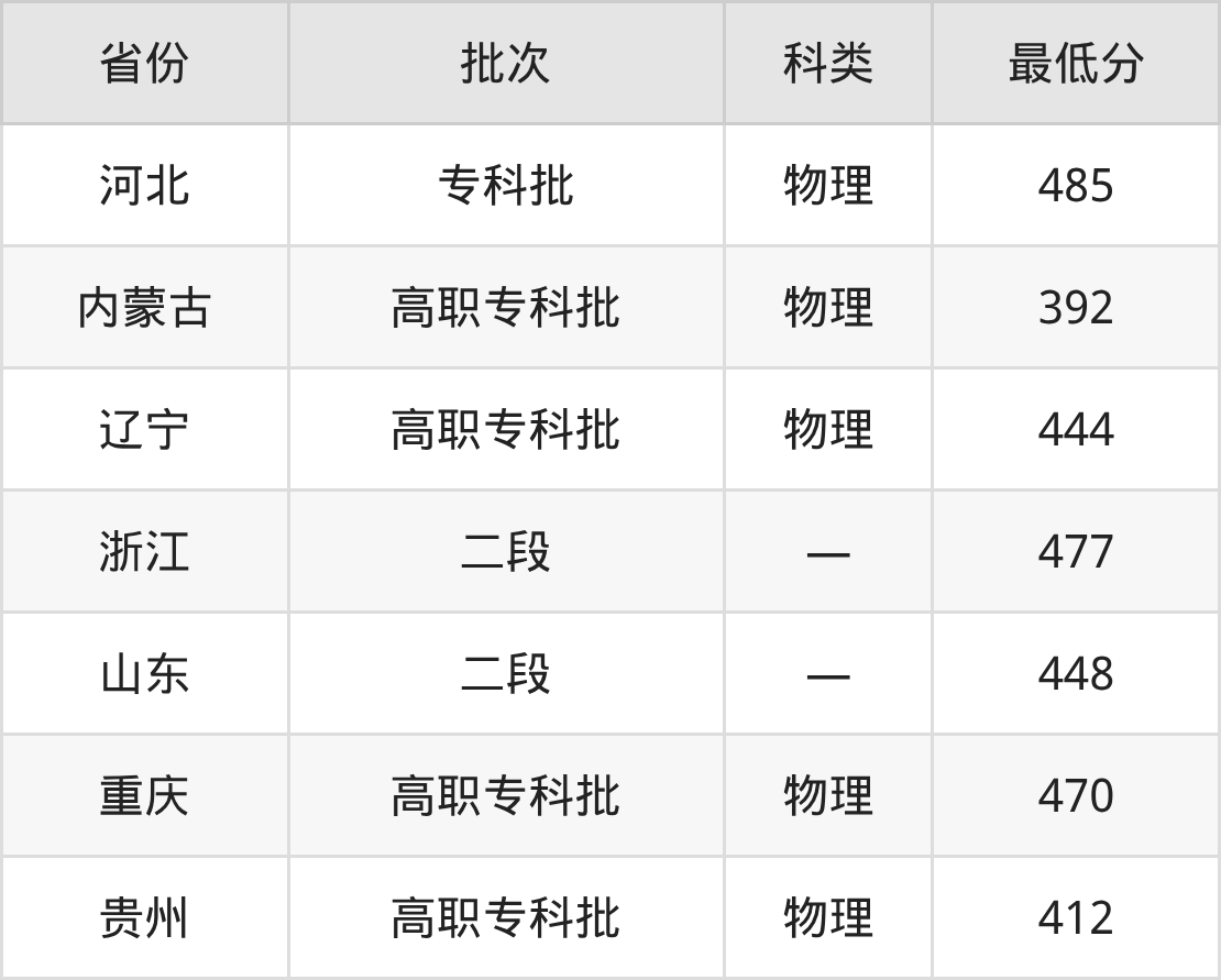 成都航空职业技术大学飞行器数字化装配技术专业录取分数线从392分到485分不等,最低分数线如下: